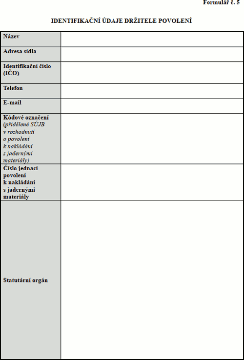 Formulář x. 5